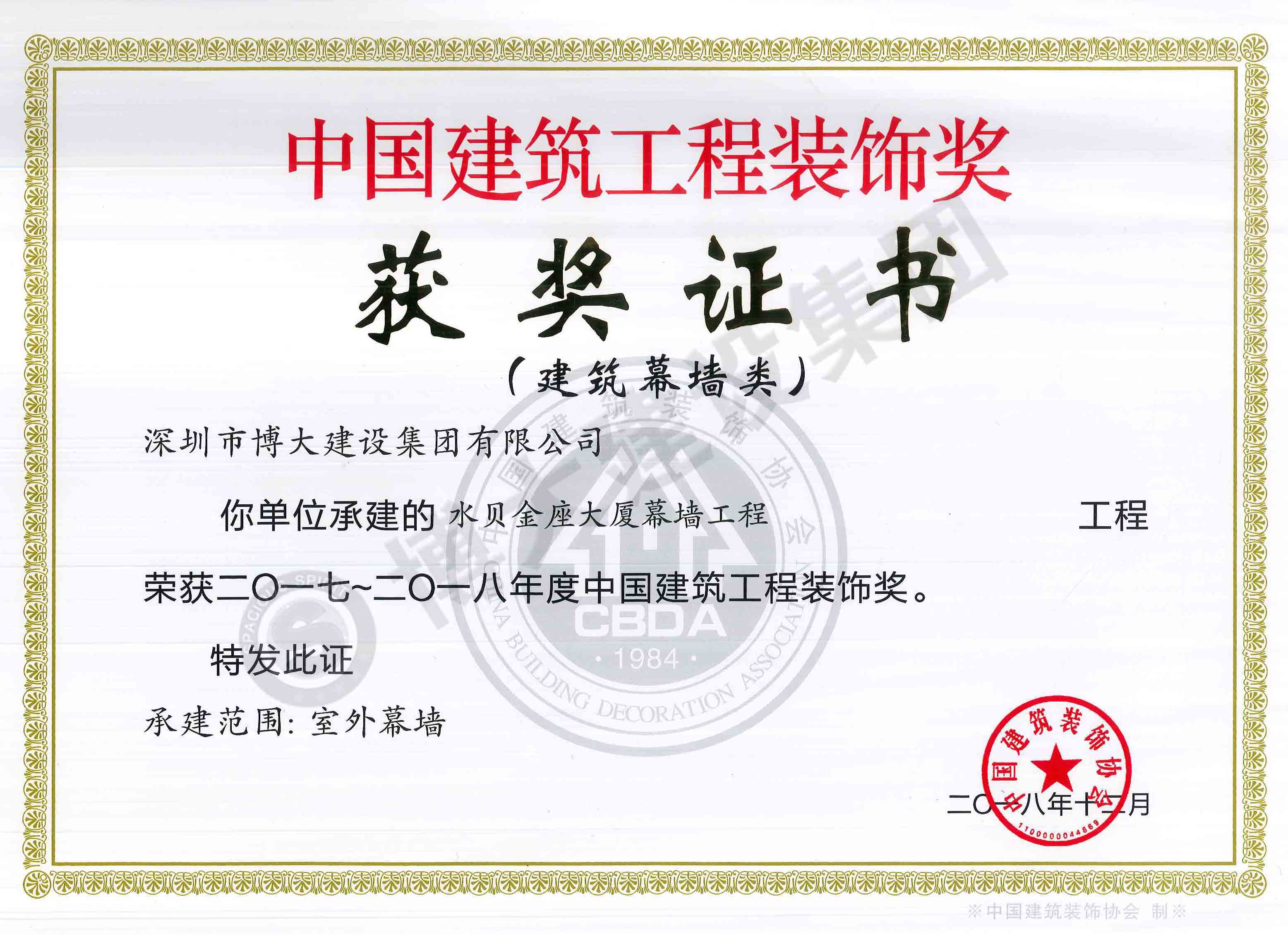 中國建筑工程裝飾獎(水貝金座大廈-幕墻)