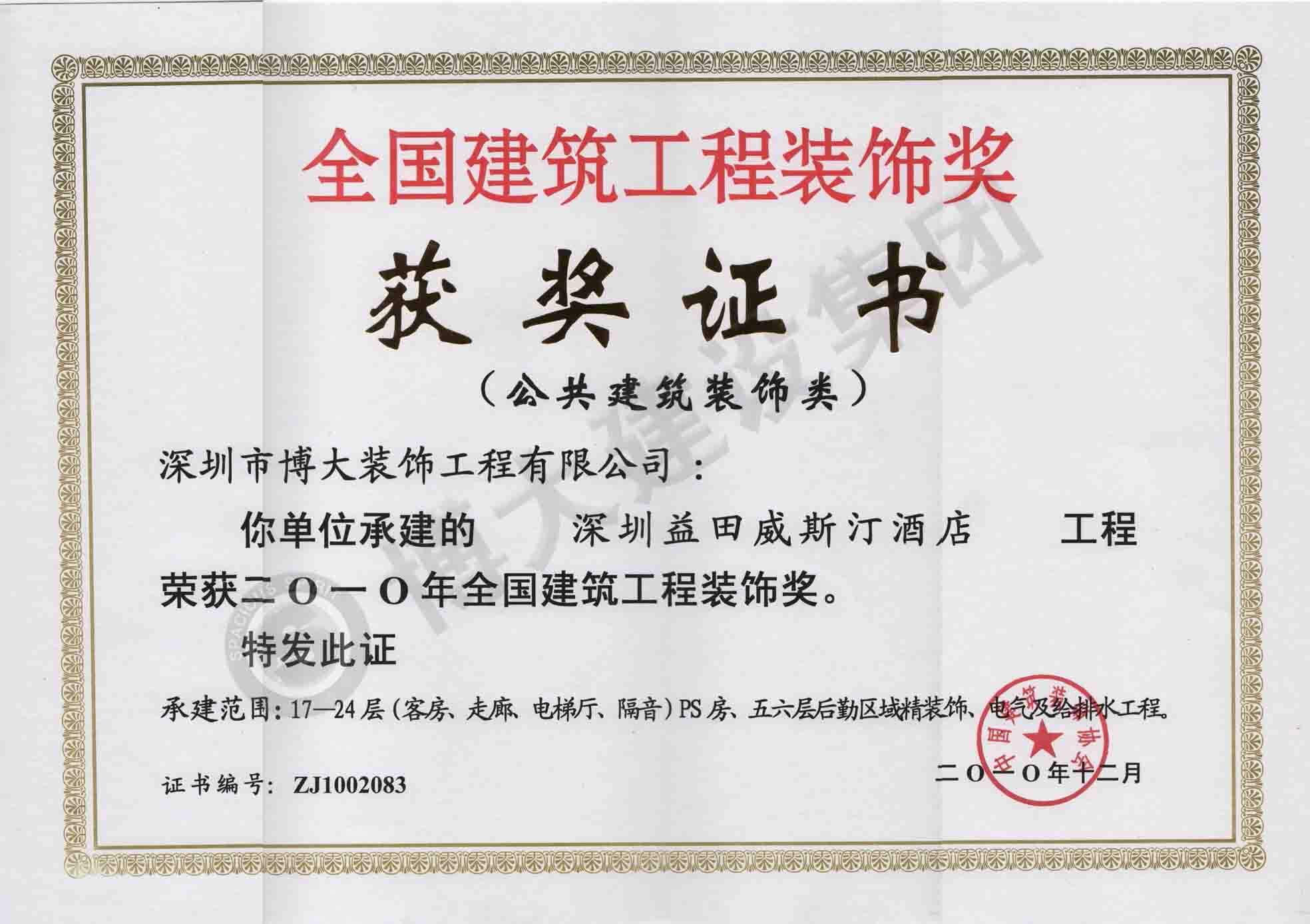 中國建筑工程裝飾獎(深圳益田威斯汀酒店-裝飾)
