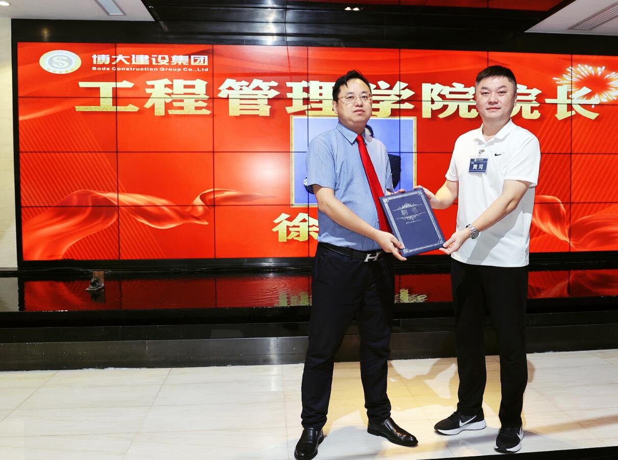 14日上午,培訓(xùn)正式開始前,博大鐵軍大學(xué)隆重舉行工程管理學(xué)院、研發(fā)技術(shù)學(xué)院兩個院長的任命儀式。任命集團(tuán)高級副總裁、裝飾機(jī)電中心總經(jīng)理徐朝華為工程管理學(xué)院院長,任命幕墻中心總工程師李立強(qiáng)為研發(fā)技術(shù)學(xué)院院長。